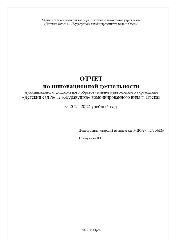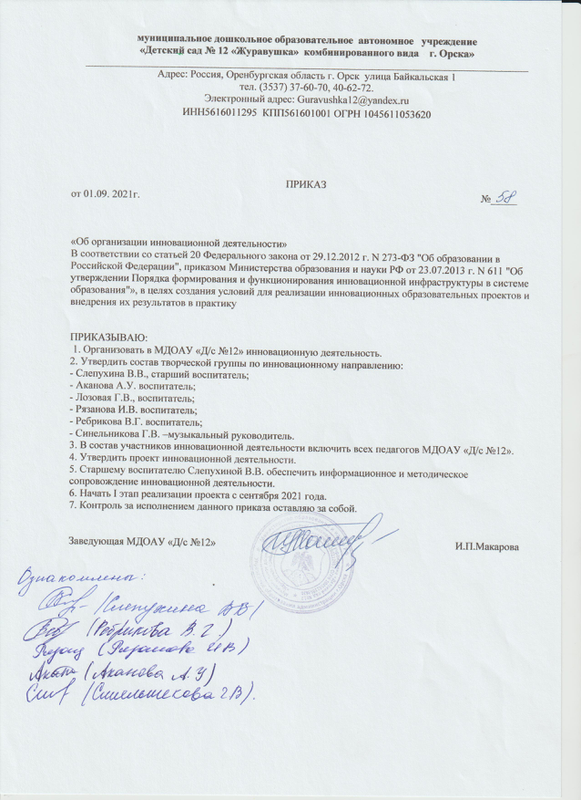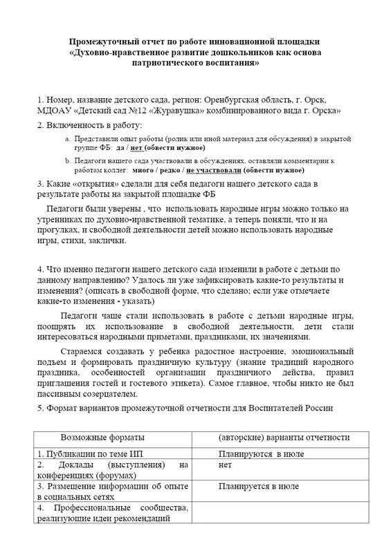 Инновационная площадка федерального уровня НИИ "Воспитатели России" в МДОАУ "Д/с №12"